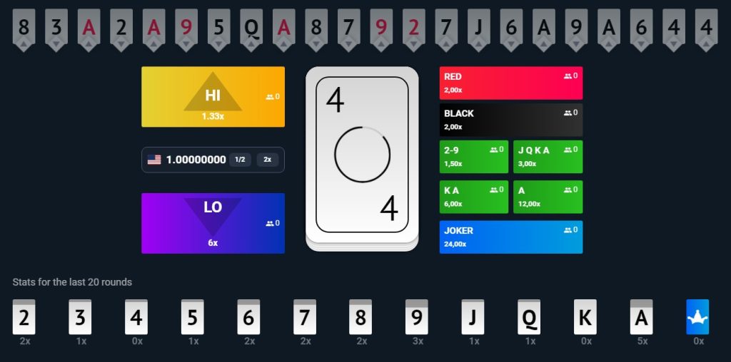 - Hilo – A game with 50-50 odds, whether the bet is higher or lower than the outcome.